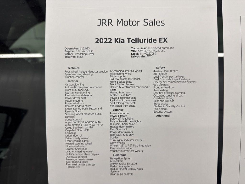At JRR Motor Sales, we focus on providing a straightforward and trustworthy car-buying experience. Our inventory is carefully selected to offer quality pre-owned vehicles backed by competitive pricing, flexible financing options, and a strong commitment to customer service. Every vehicle we offer undergoes a multi-point inspection prior to sale, and we encourage customers to make informed decisions based on a vehicle’s current condition and welcome independent inspections from a trusted local mechanic. Standout features with this vehicle inlcude:3rd row seats: split-bench, Apple CarPlay & Android Auto, Fully automatic headlights, Heated & Ventilated Front Bucket Seats, Heated steering wheel, Leather Seat Trim, Leather steering wheel, Navigation System, Power Liftgate, Power moonroof, Security system, Smart Key w/ Push Button and Remote Start, Steering wheel mounted audio controls. Recent Arrival!
